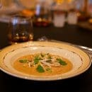 Our beloved Surinamese peanut soup with coconut, bean sprouts, lime, cilantro, and chili. Rich, warm, and unforgettable.
