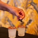 Almond orgeade, coconut, lime, and Madame Jeanette oil poured over crushed ice. Served in a tajin-rimmed shot glass. Sweet, cool, and a little dangerous.
